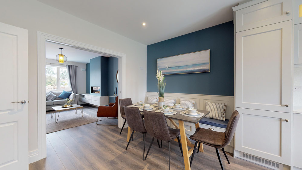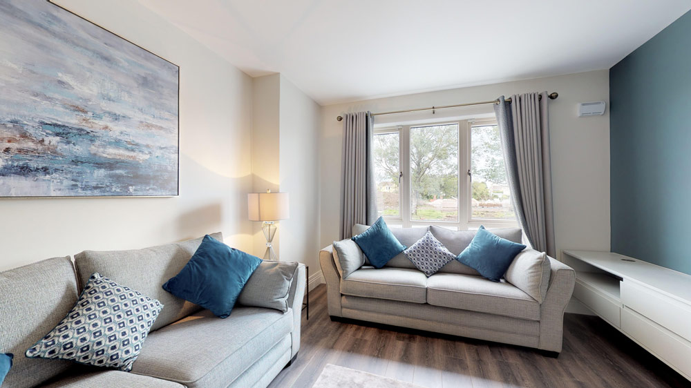 Upstairs, you’ll love the generous master bedroom with an elegant tiled en-suite, finished to the highest possible standards. These are followed by additional, well-appointed, single and double bedrooms – while there is also a generously proportioned hot press with shelving, providing handy extra storage.
